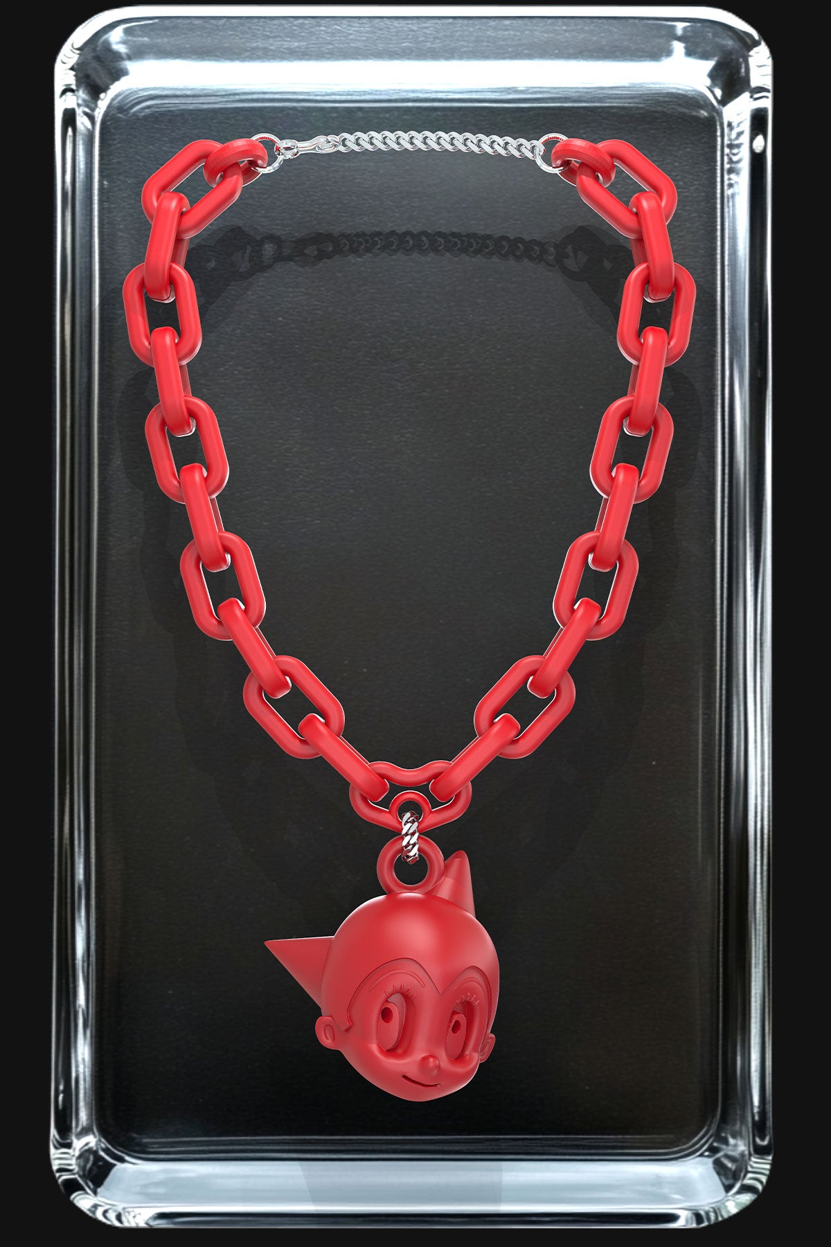 Featuring a striking 3D Astro Boy pendant on a vibrant red chain, this piece is made for collectors, manga lovers and style-forward hypebeasts.