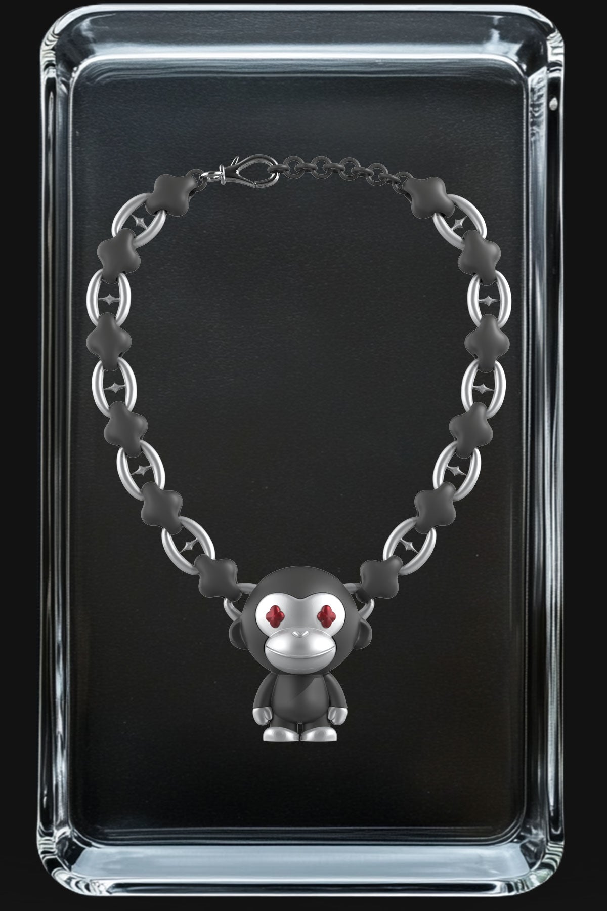 A vibrant detail brings the Space Monkey to life: its eyes are coated with a colored glitter enamel, adding a playful sparkle and depth to its expression.